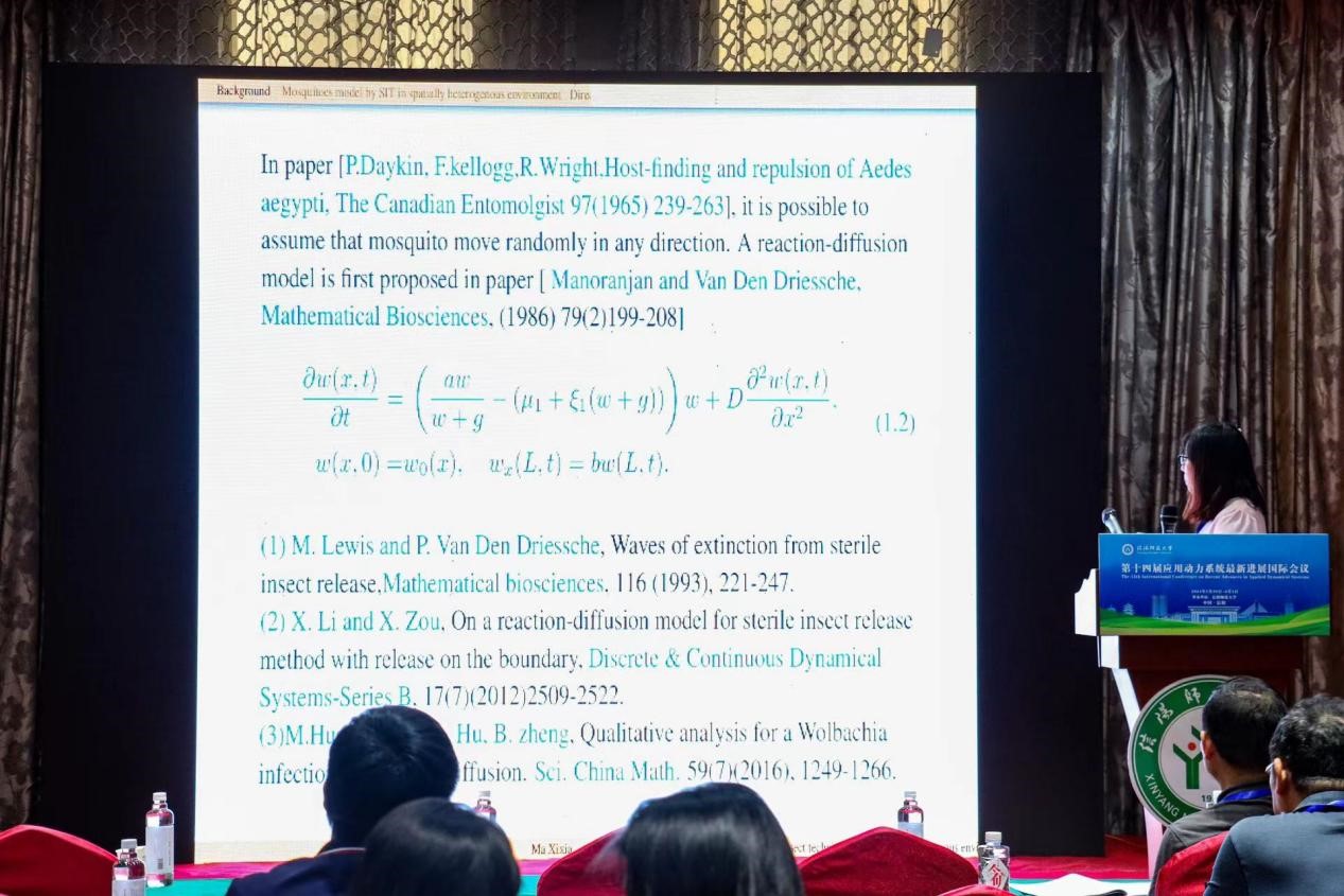 信阳师范大学的马西霞,做了题目为《 Dynamics of wild mosquitoes by sterile insect technique in spatially heterogenous environment》的报告。