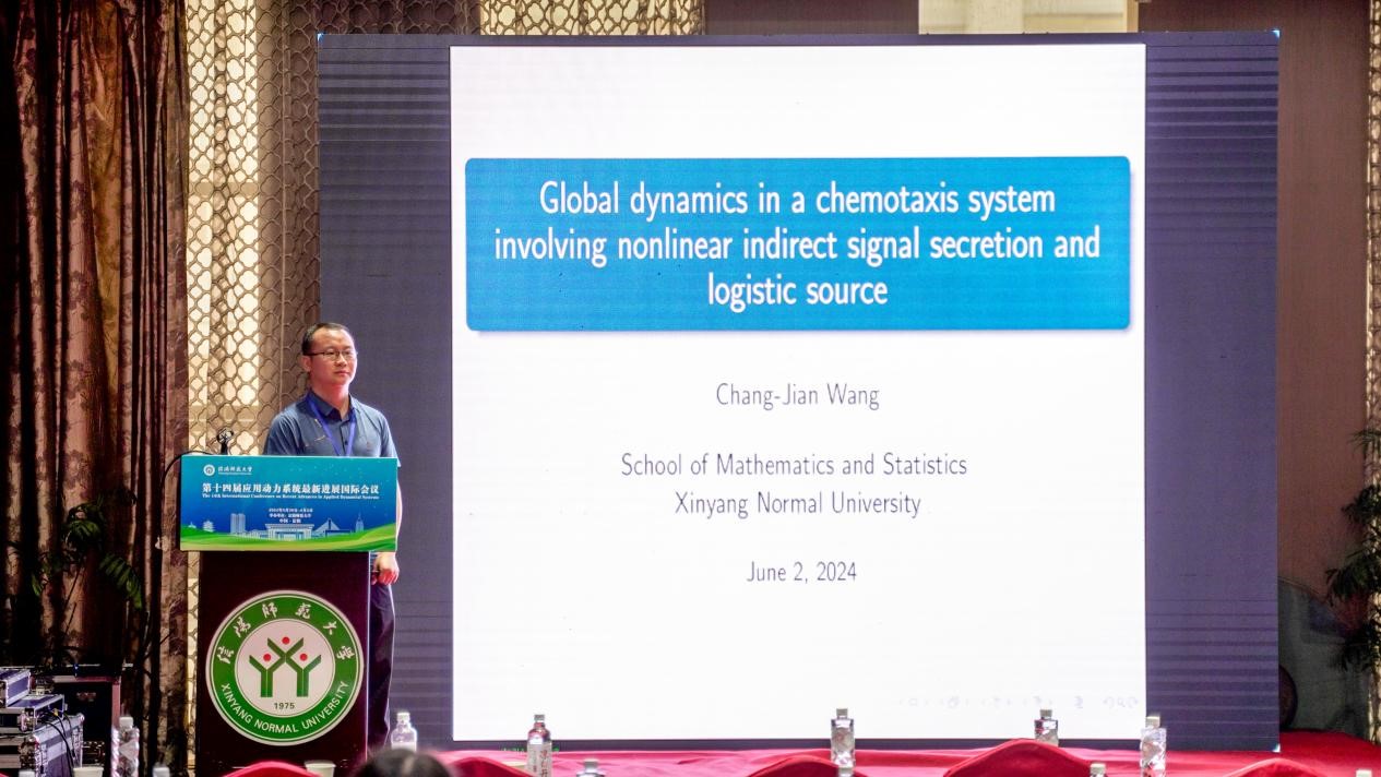 信阳师范大学的王常健,做了题目为《 Global dynamics in a chemotaxis system involving nonlinear indirect signal secre tion and logistic source》的报告。