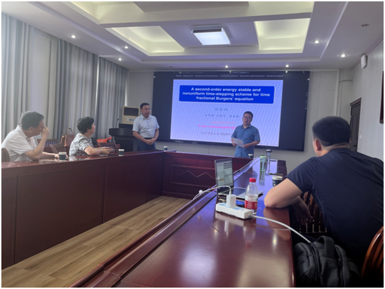 7月28日上午,应太阳集团tcy8722邀请,河南财经政法大学任金城教授作了题为《A second-order energy stable and nonuniform time-stepping scheme for time fractional Burgers' equation》的学术报告。报告会由李世顺教授主持,部分老师及研究生聆听了此次报告。