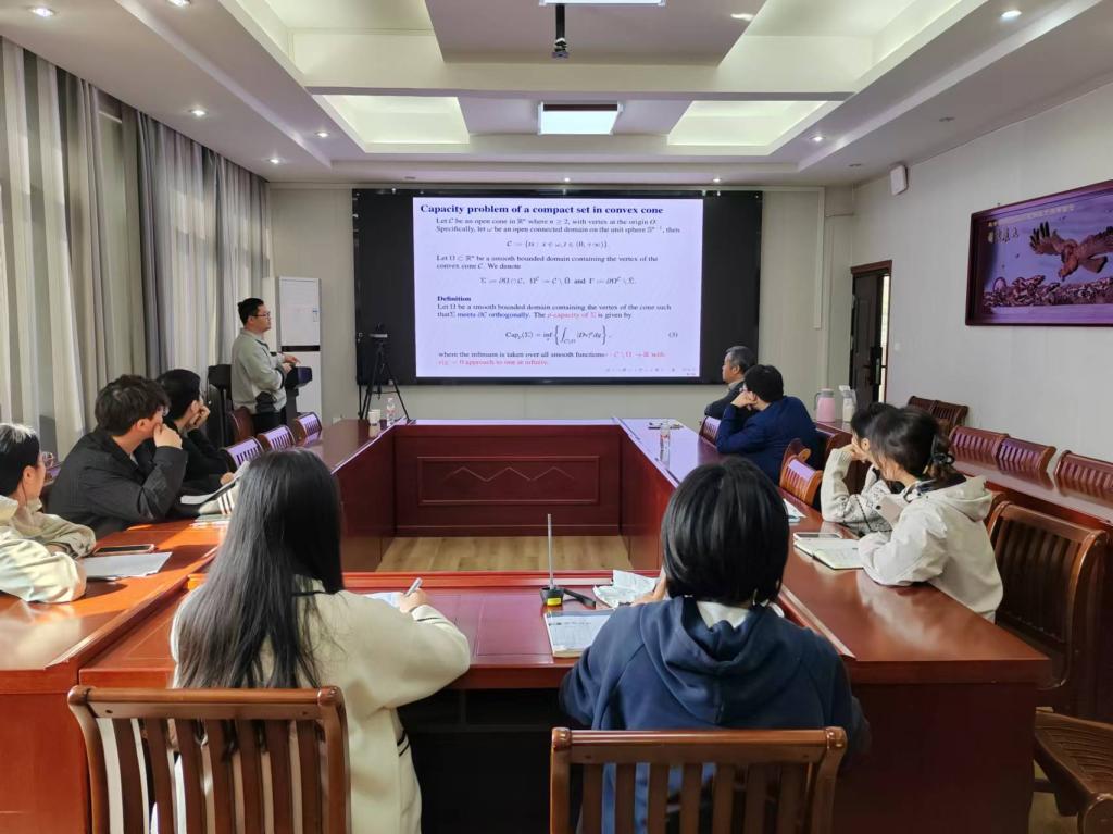 10月25日上午,应太阳集团tcy8722邀请,广西师范大学尹佳斌副教授作了题为《Sharp upper bounds of $p$-capacity in convex cone and asymptotically flat half-space》的学术报告。报告会由副院长韩英波教授主持,部分教师及研究生聆听了此次报告。