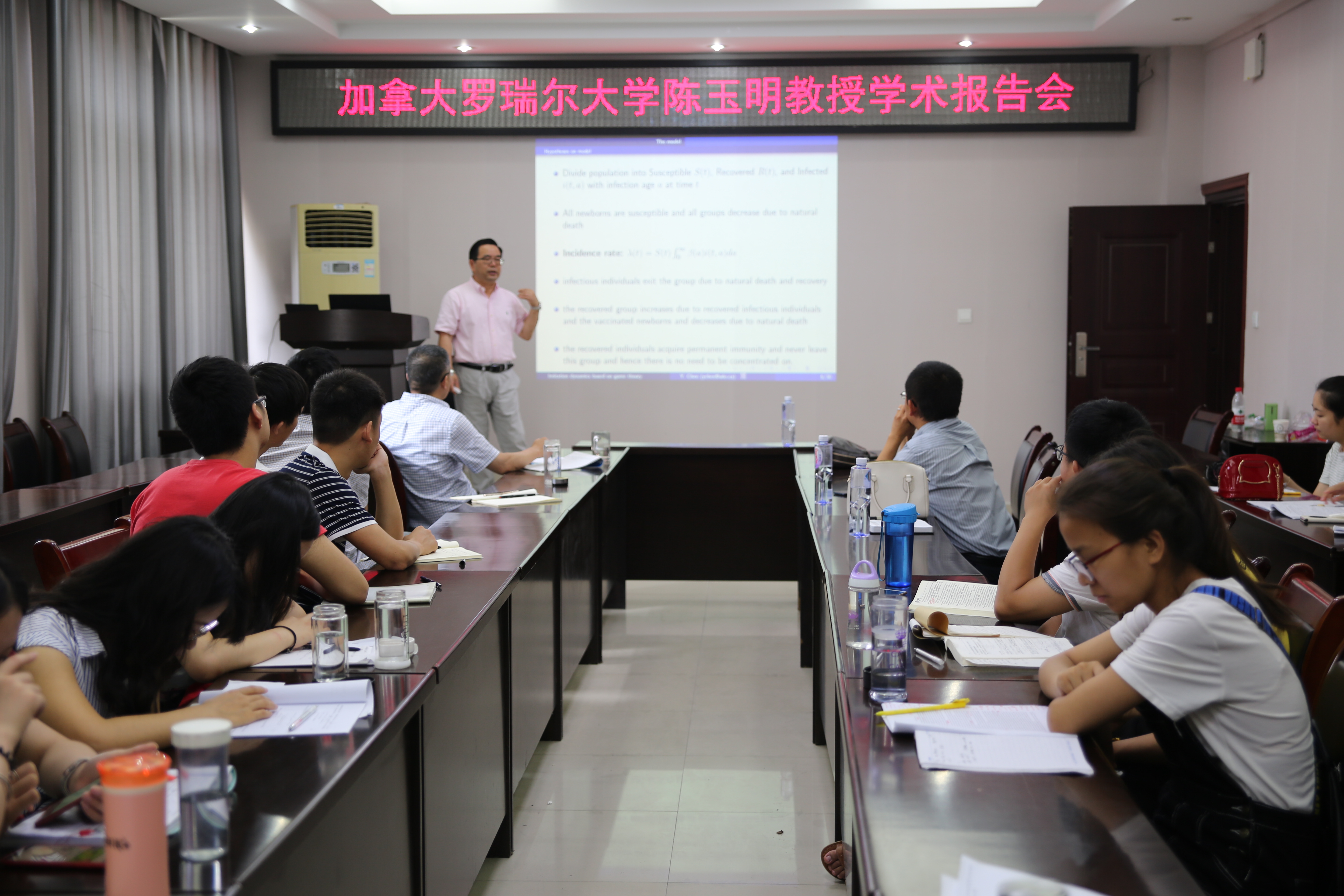 6月21日,应太阳集团tcy8722邀请,加拿大罗瑞尔大学陈玉明教授在太阳集团tcy8722学术报告厅分别作了题为“Global analysis of a viral model with both cell-free and cell-to-cell infection modes”和“Imitation dynamics of vaccine decision-making behaviors based on the game theory”的学术报告。报告会由太阳集团tcy8722副院长蔡礼明教授主持,学院部分教师、研究生聆听了此次报告。