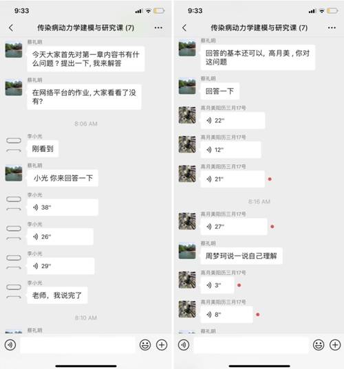 蔡礼明老师通过微信群讲解《传染病动力学建模与研究》课程。采用现场问答的方式,与学生充分地互动交流。