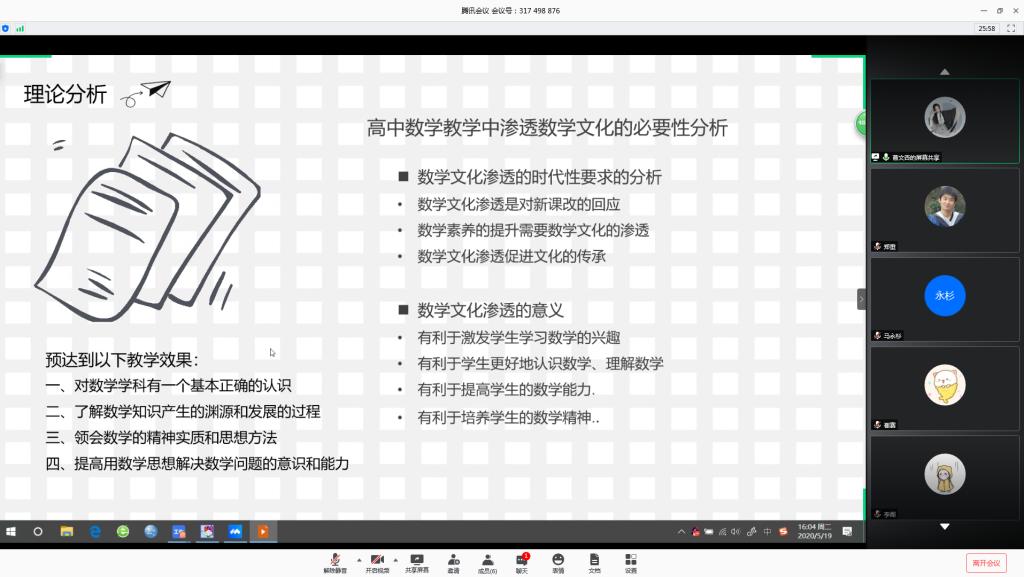 为提高教育硕士培养质量,减轻新冠肺炎疫情对学科教学(数学)专业研究生培养工作的影响。太阳集团tcy8722自5月开始,面向2019级教育硕士,通过腾讯会议平台举办了9场教育硕士线上读书报告会,取得了较好的培养效果。